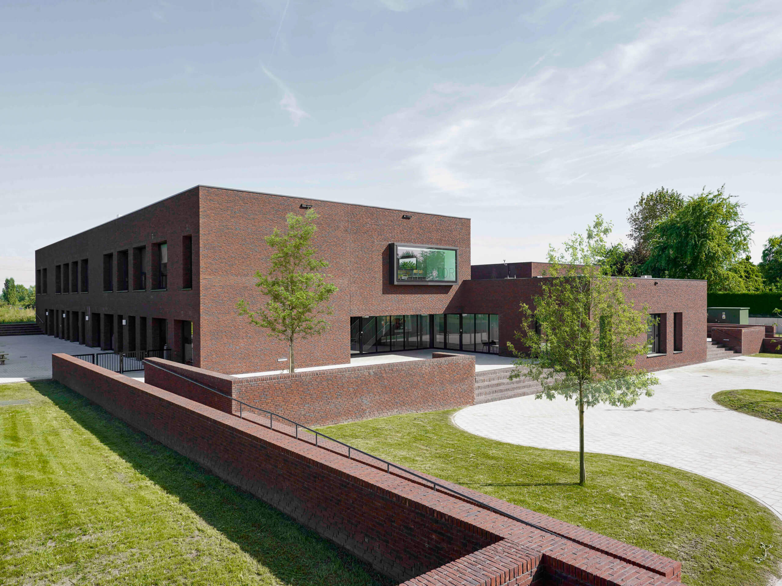 Het ontwerp van basisschool Mercator biedt een geborgen omgeving vol licht, ruimte en mogelijkheden tot ontmoeting. De school in Rupelmonde creëert in de smalle G. De Cremerstraat een open, groene ruimte. Waar vroeger een dichte straatwand stond, bloeit nu een uitnodigende plek. Het ontwerp verbindt school en straat: bomen en zitelementen nodigen uit tot ontmoeting, terwijl het verhoogde schoolterrein kinderen veilig laat spelen én zichtbaar houdt voor de buurt. Zo blijft Mercator een plek waar leren, spelen en samenkomen hand in hand gaan.